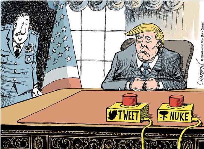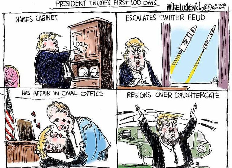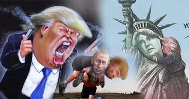 "30 كاريكاتير لترامب × 100 يوم".. الإعلام الغربى يوجه انتقادات لاذعة منذ تنصيبه.. الرسوم تصور تهديد رئيس أمريكا للعالم بالأسلحة النووية وانتهاكه للحريات وحقوق الإنسان.. وتكشف علاقته الحقيقة بنظيره الر