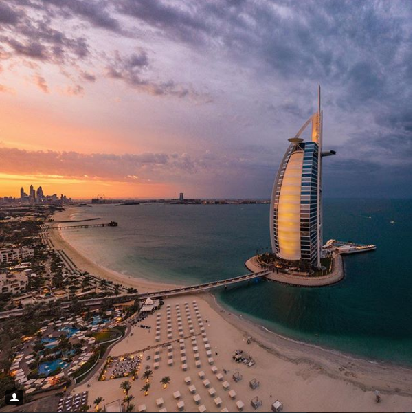 تملك دبى العديد من المبانى الفاخرة والأنيقة، حتى أصبح يضرب بها المثل فى الجمال وروعة التنظيم والتصميم، فضلا عن التنسيق الحضارى، ولا يمكن أن نتحدث عن جمال دبى دون ناطحة ذكر برج "خليفة" أطول ناطحة سحاب فى العالم، حيث يبلغ طوله 828 مترًا. وفى هذا الإطار يحرص الأمير حمدان بن راشد، ولى عهد دبى، على نشر العديد من الصور التى تبرز هذا الجمال الذى تتمتع به الإمارة الإماراتية الشهيرة، من خلال استعراض أبرز معالمها الأنيقة، حيث التقط صور "سيلفى" من برج خليفة وتظهر فى الخلفية مبانى دبى وهى أنيقة بالقرب من البحر.