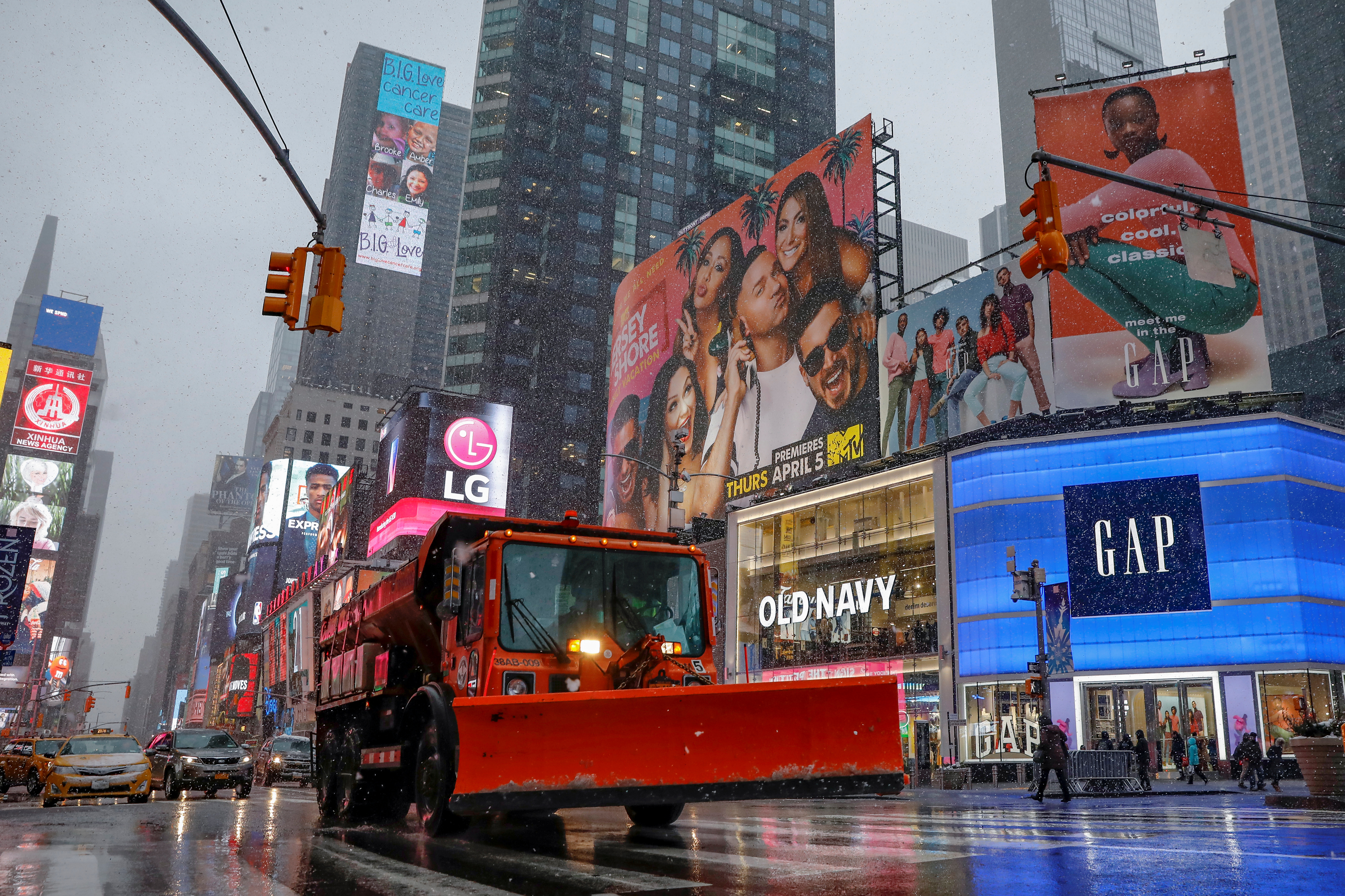 عملت السلطات الأمريكية على إزالة الثلوج التى سقطت فى شوارع مدينة نيويورك الأمريكية وغيرها، بعدما تسببت عاصفة ثلجية فى شل حركة النقل العام وإغلاق المدارس فى عدة مدن، حيث عانى سكان المنطقة من عاصفة ثلجية كبرى فى هذا الشهر. وقال دان بيترسون خبير الأرصاد الجوية بمركز التنبؤ بالطقس، إن العاصفة ستؤدى إلى تساقط الثلوج يتراوح ارتفاعها ما بين 30 و46 سنتيمترا فى مناطق من فيلادلفيا إلى مدينة نيويورك. كما اجتاحت العاصفة نقاطا على طول الساحل الشرقى مثيرة رياحا تزيد سرعتها عن 80 كيلومترا فى الساعة، وفقاً لمركز التنبؤات الجوية.