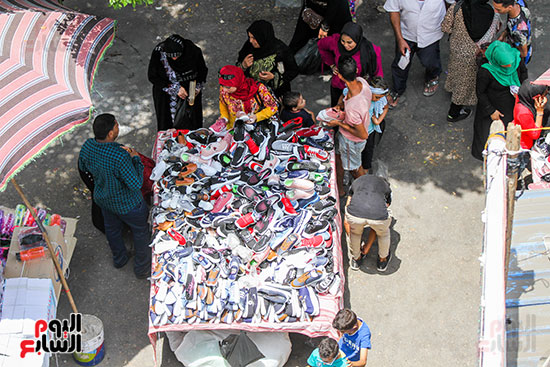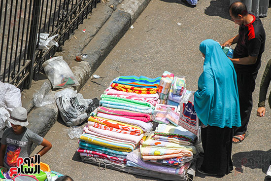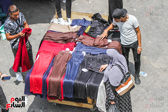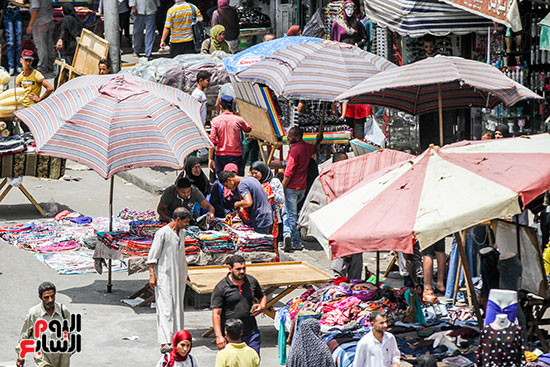 تستقبل المحلات التجارية بميدان العتبة المواطنين لشراء الملابس الجاهزة استعدادا لعيد الأضحى المبارك ، حيث تقوم المحلات التجارية بطرح الملابس بجانب قيام الباعة الجائلين أيضا بطرح منتجات الملابس لمختلف الأعمار "سيدات ورجال ،طفال " وتشهد الاسواق بميدان العتبة حاليا تردد المواطنين على شراء الملابس الجهازة فيما قام اللاعة الجائلين باستخدام المظلات الكبيرة لمواجهة حرار الشمس ،وذلك بالتوازى أيضا مع انطلاق عروض الأوكازيون الصيفى بالمحلات التجارية والتى تشهد تخفيضات فى اسعار منتجات الملابس الجاهزة .